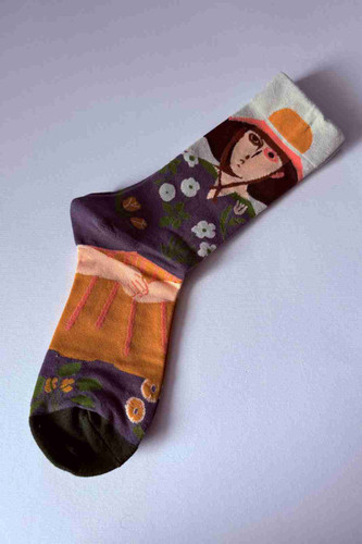 ناموجودجوراب ساقدار طرح دخترک جنگلی و شاخههای گل – لطیف، خاص و کمی شاعرانه