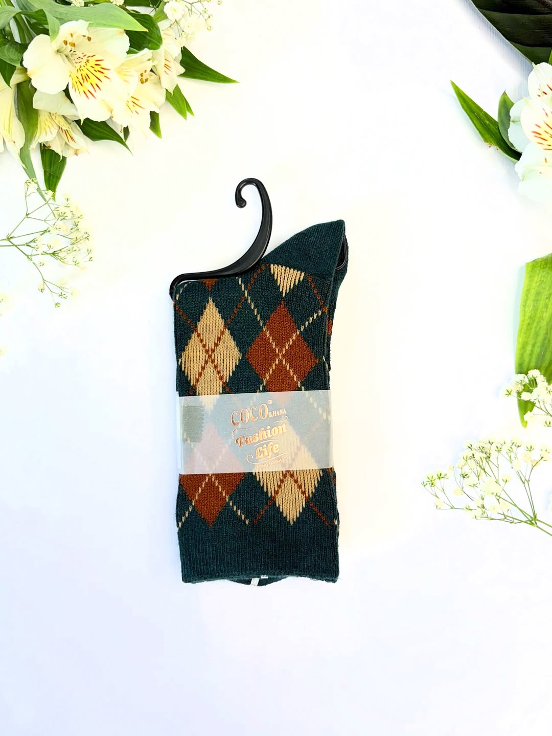 جوراب طرح لوزی کلاسیک – گرم، شیک و مناسب استایل روزمره
