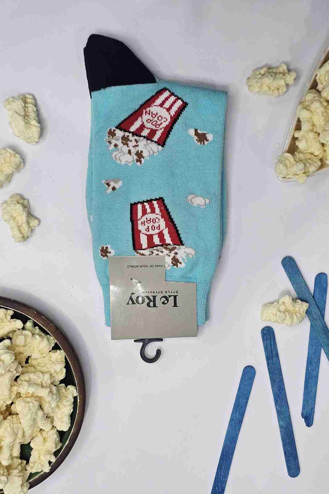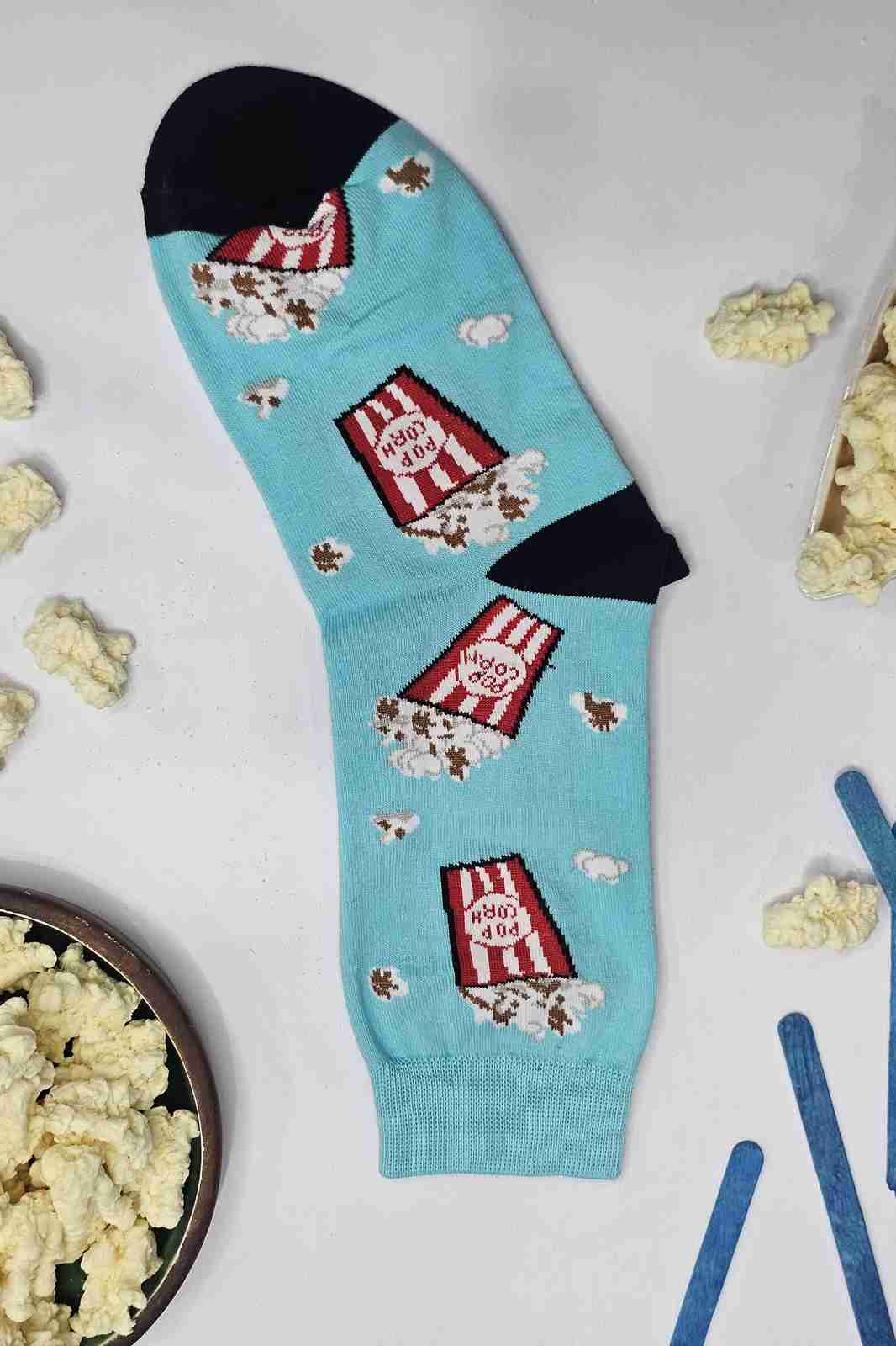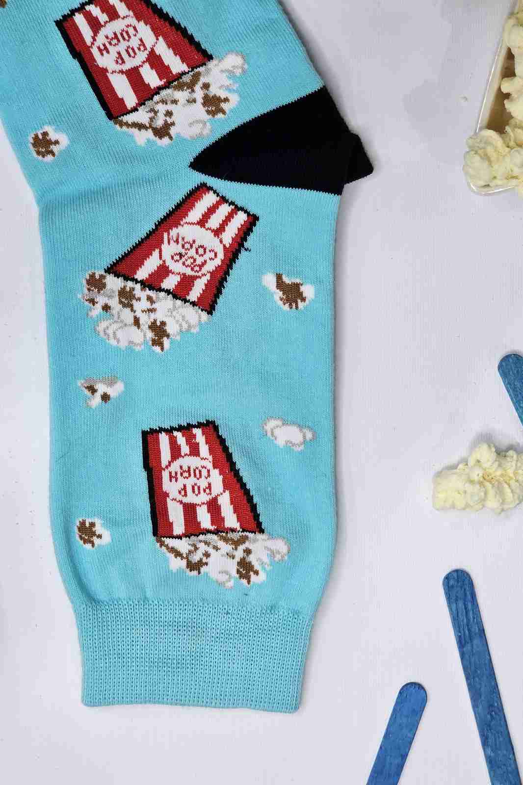 جوراب فانتزی آبی طرح پاپ‌کورن – نمای اصلی محصول