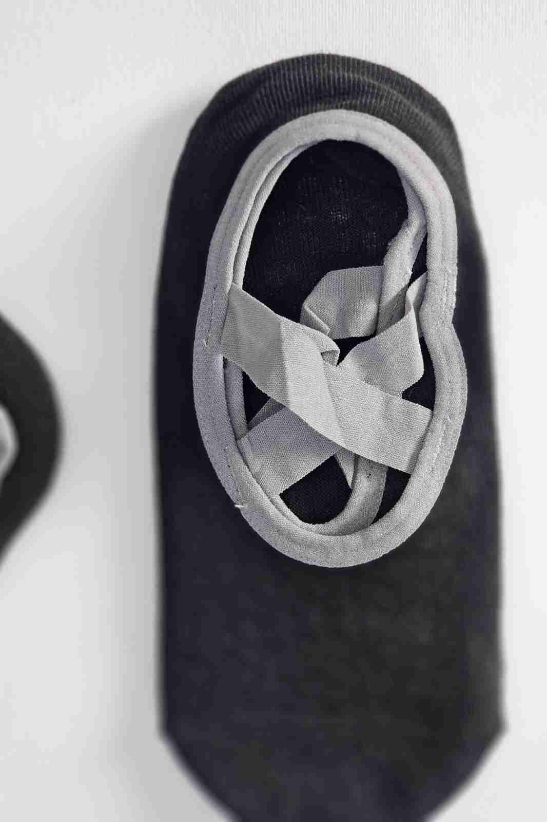 ترمزهای سیلیکونی کف پا کمک میکنن روی مت یا زمین ثابت بمونی و کش ضربدری روی پا باعث میشه جوراب وسط تمرین تصمیم به مهاجرت نگیره!