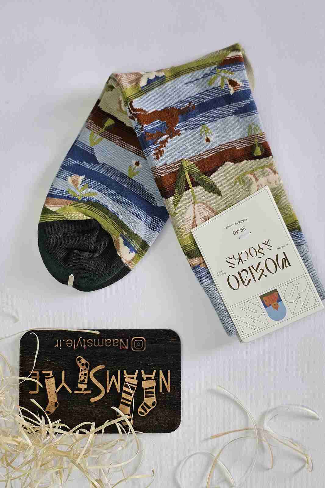 جوراب طرح طبیعت با حیوانات جنگلی؛ یک قدم تا دل جنگل