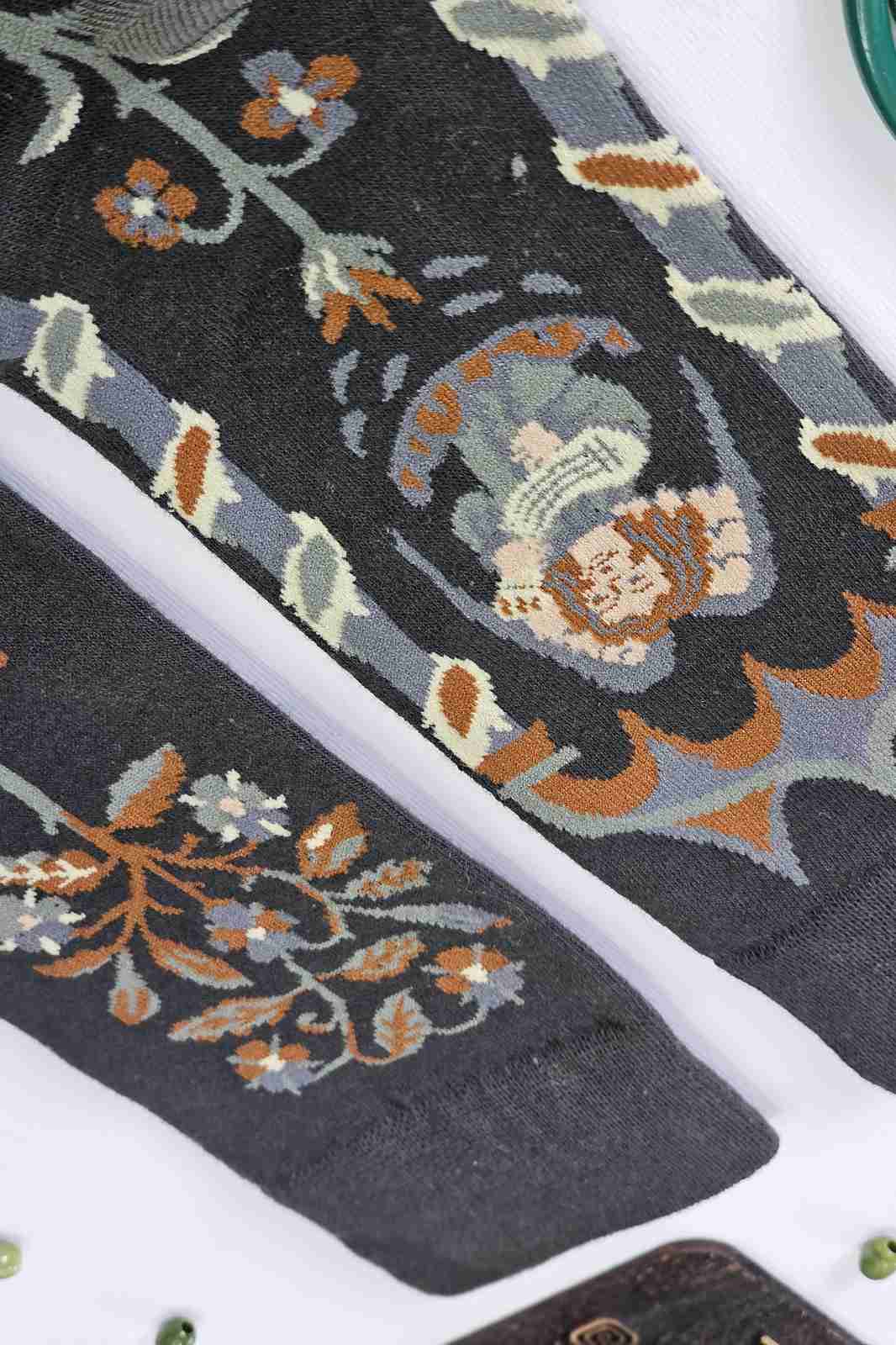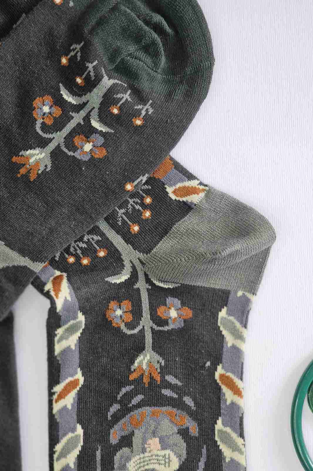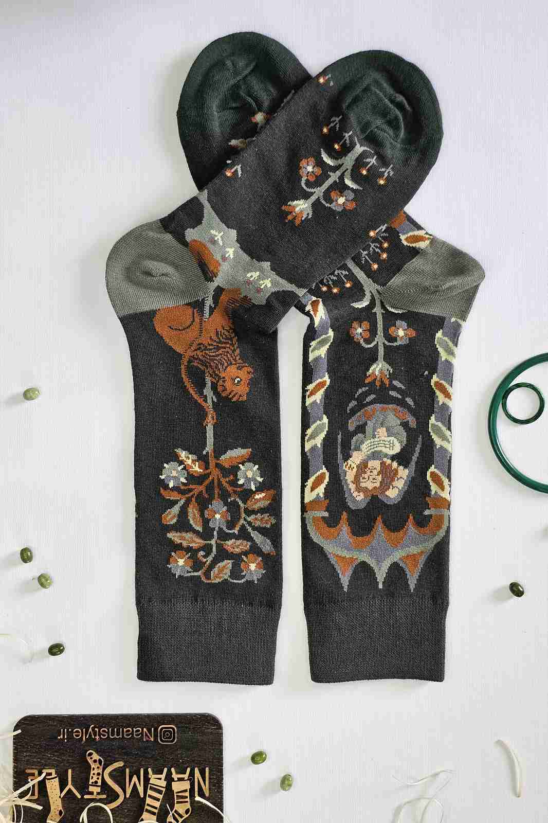 جوراب ساقدار طرح دخترک جنگلی و شاخههای گل – لطیف، خاص و کمی شاعرانه