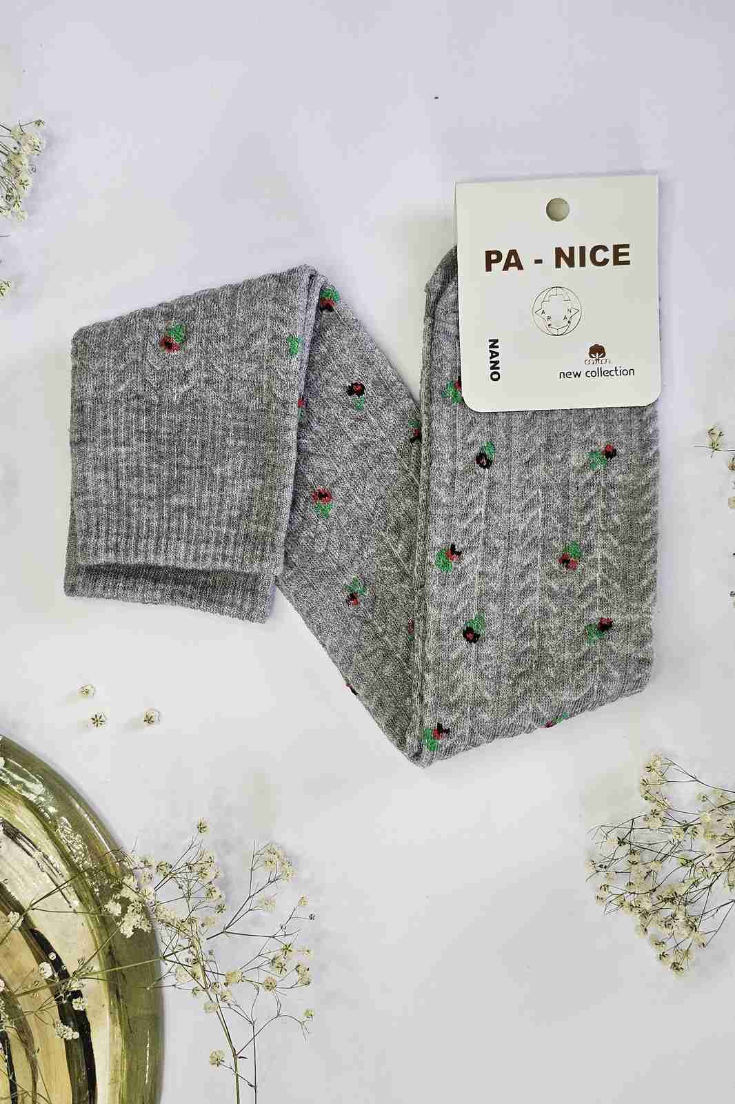 جوراب بچگانه بالای زانو بافت گندمی گلدار | نرم، خوش‌فرم و حسابی دلبر 😍