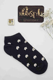 جوراب مچی زنانه مشکی طرح گل بابونه - فانتزی و شیک