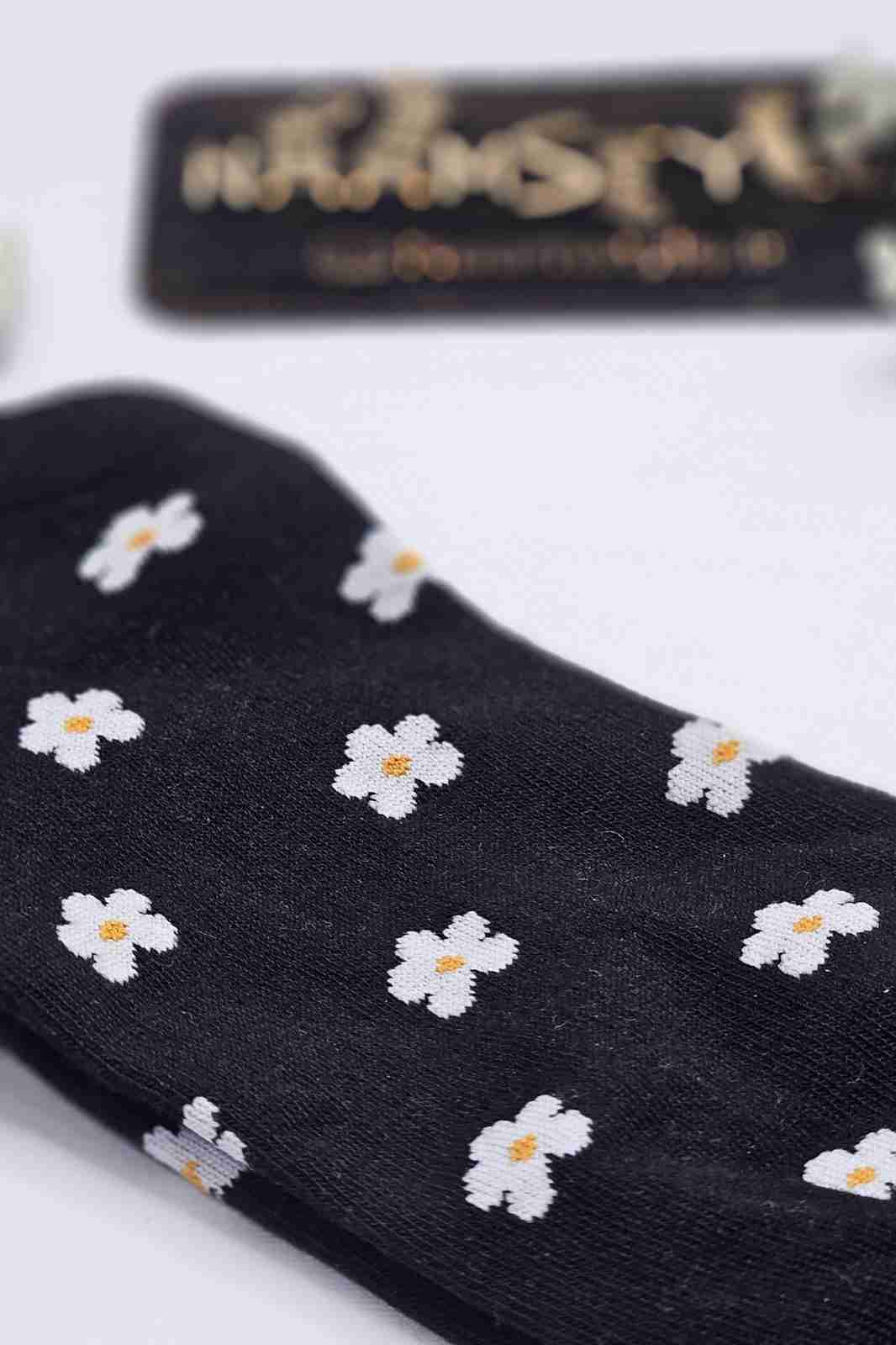 جوراب مچی زنانه مشکی طرح گل بابونه - فانتزی و شیک