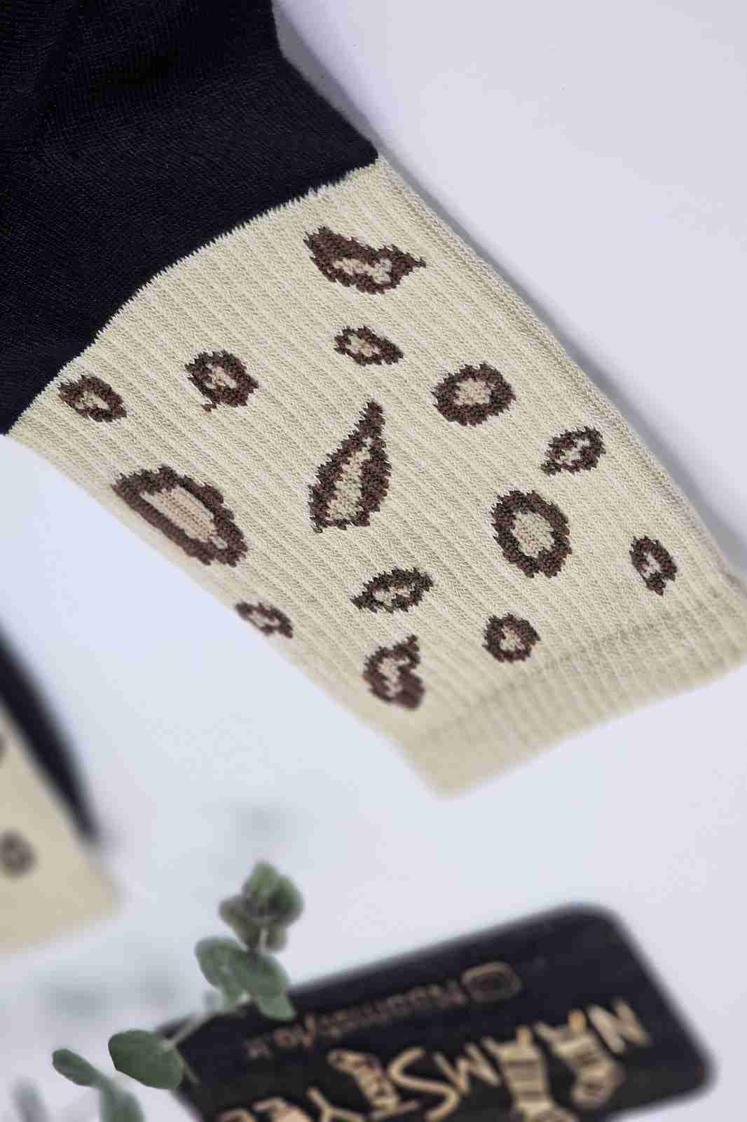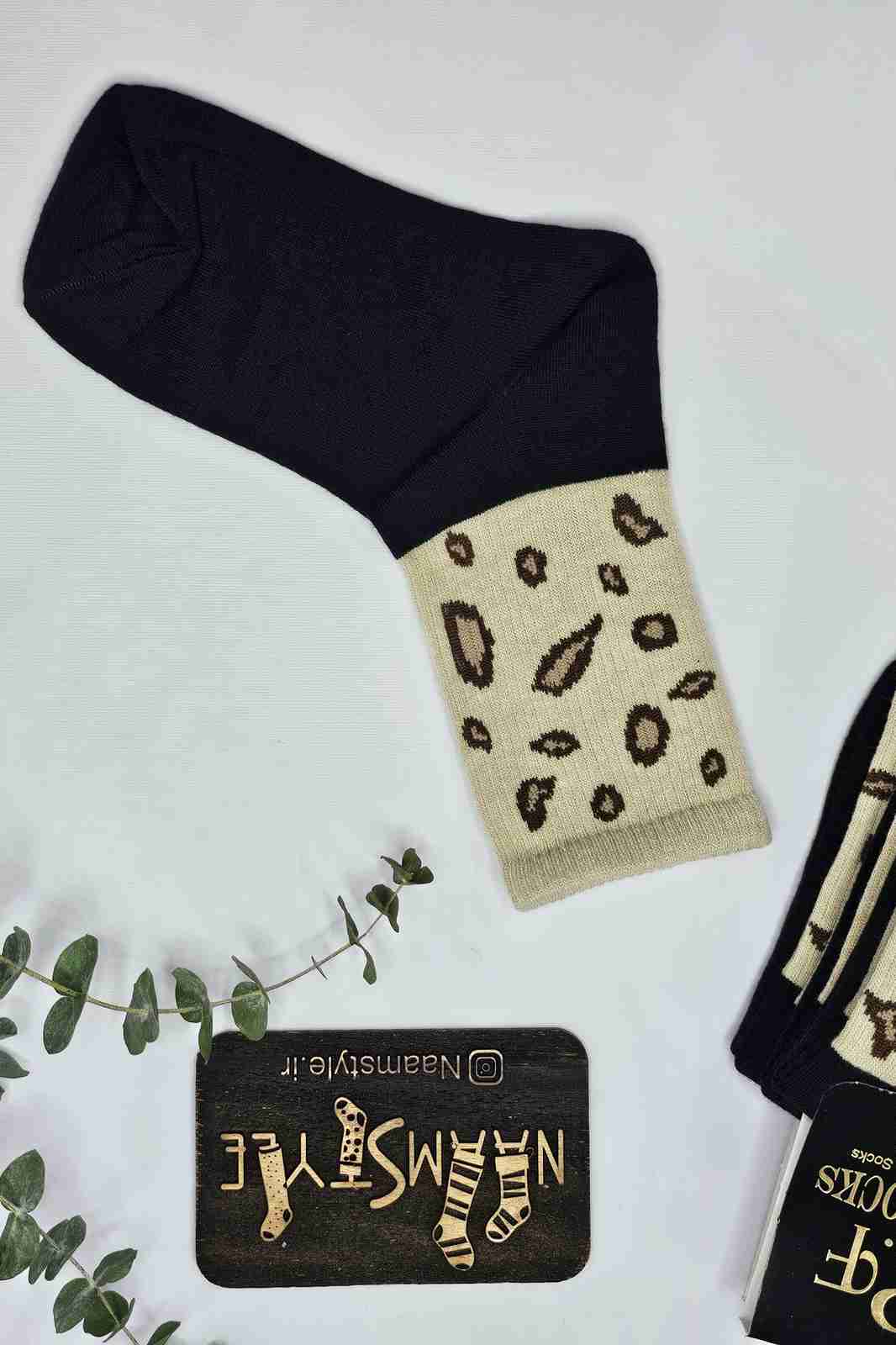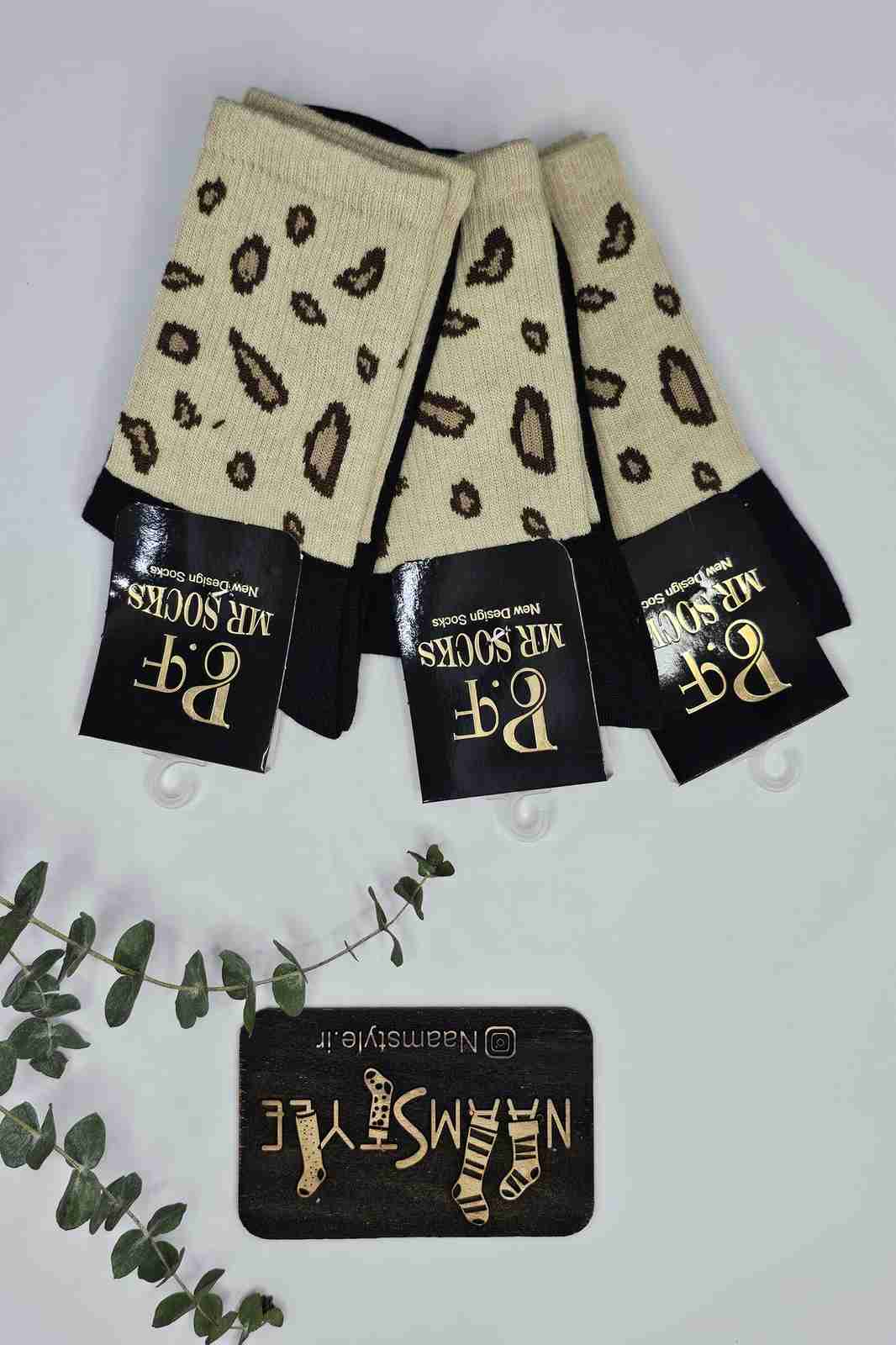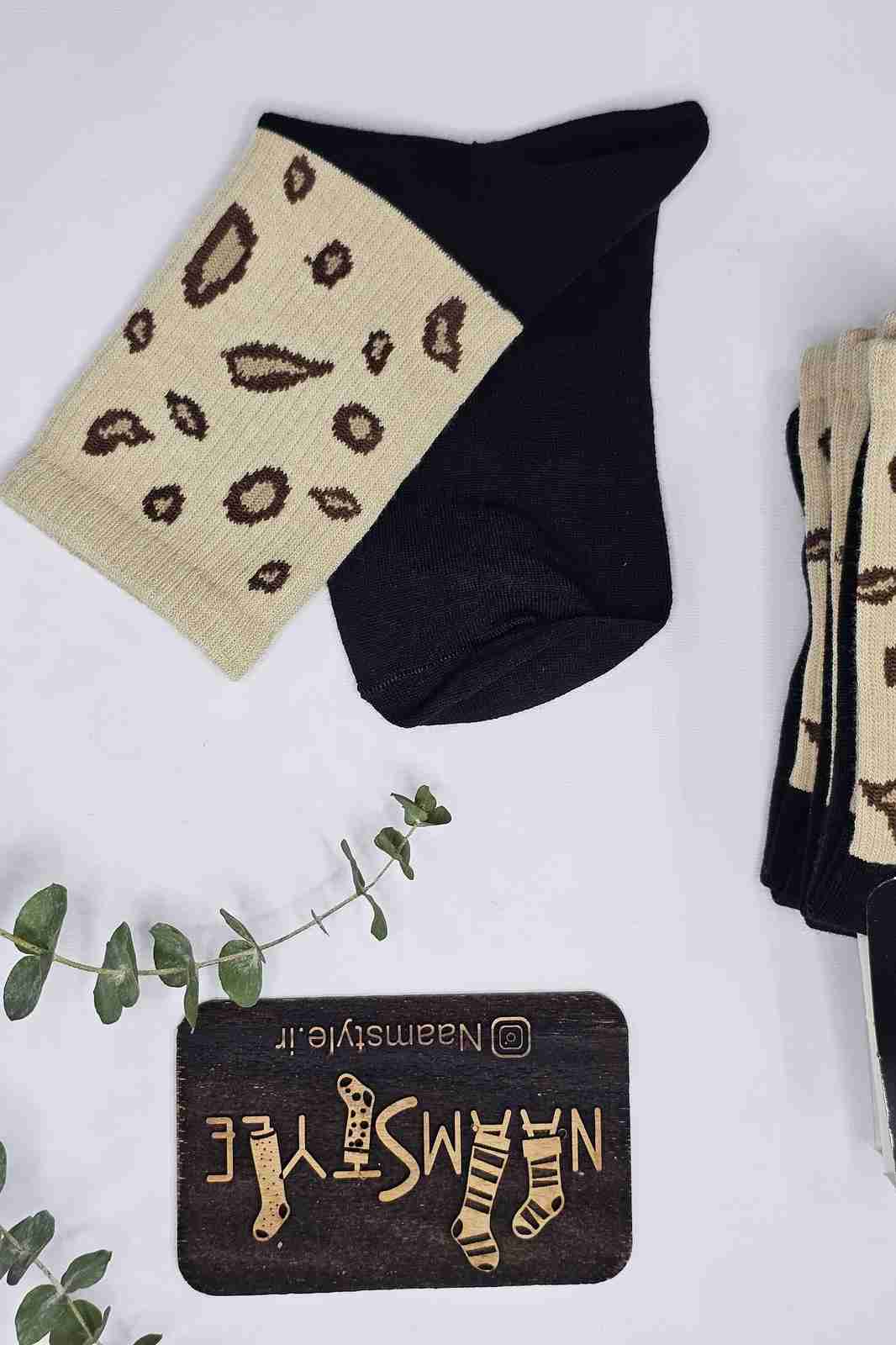 جوراب نیمساق طرح پلنگی بژ قهوهای - فانتزی شیک