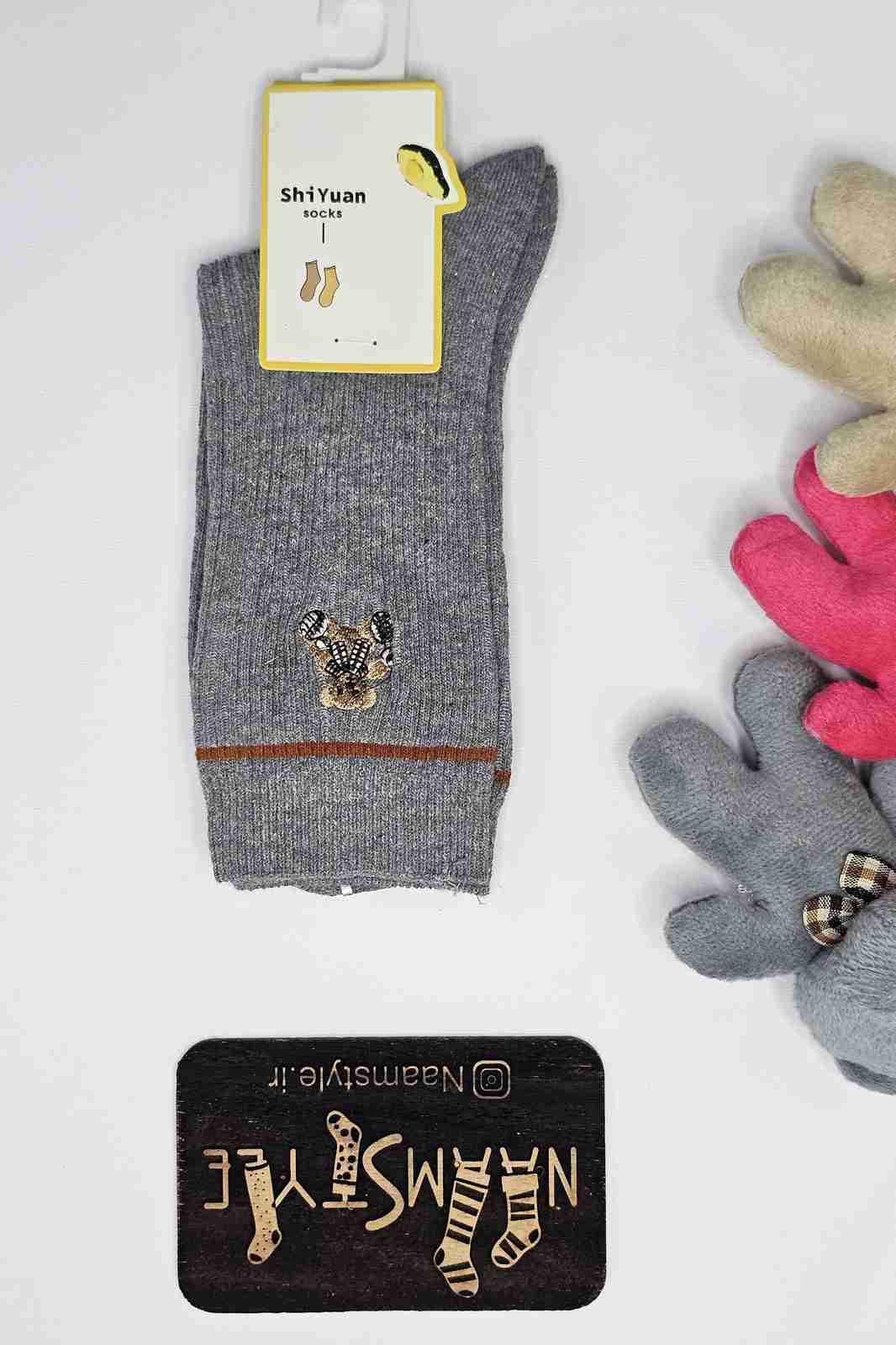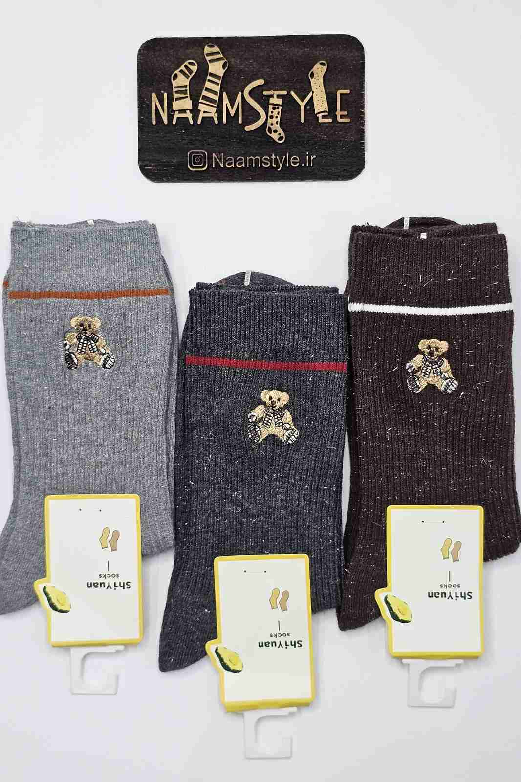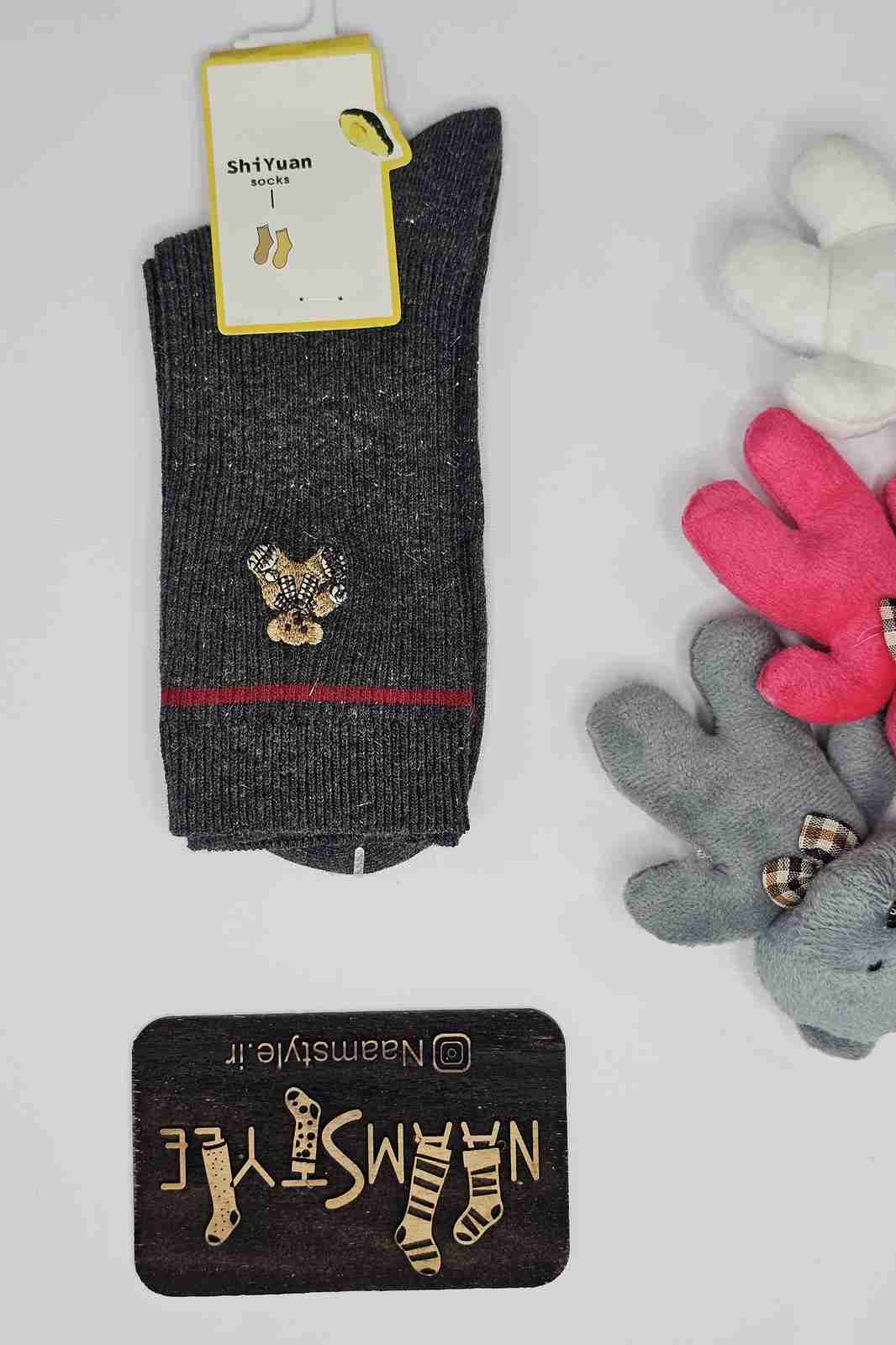 جوراب زنانه نیمساق طرح گل و خرس عروسکی - فانتزی دخترونه