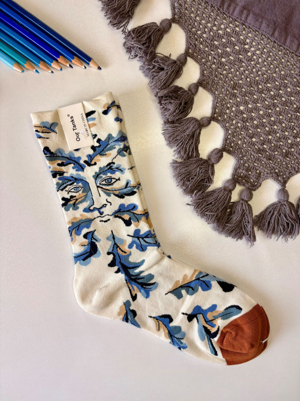 این جوراب ساق بلند با طرح خلاقانه صورت و برگهای آبی و قهوهای، انتخابی متفاوت برای افرادی است که به استایل خاص و یونیک اهمیت میدهند. پارچه نخی نرم و باکیفیت آن باعث راحتی و گردش هوا میشود و بهخوبی برای استفاده روزانه، مهمانیهای دوستانه یا استایلهای کژوال و فانتزی مناسب است. ترکیب رنگ جذاب آبی، بژ و قهوهای در کنار نوک قهوهای جوراب، جلوهای مدرن و منحصربهفرد به آن داده است.