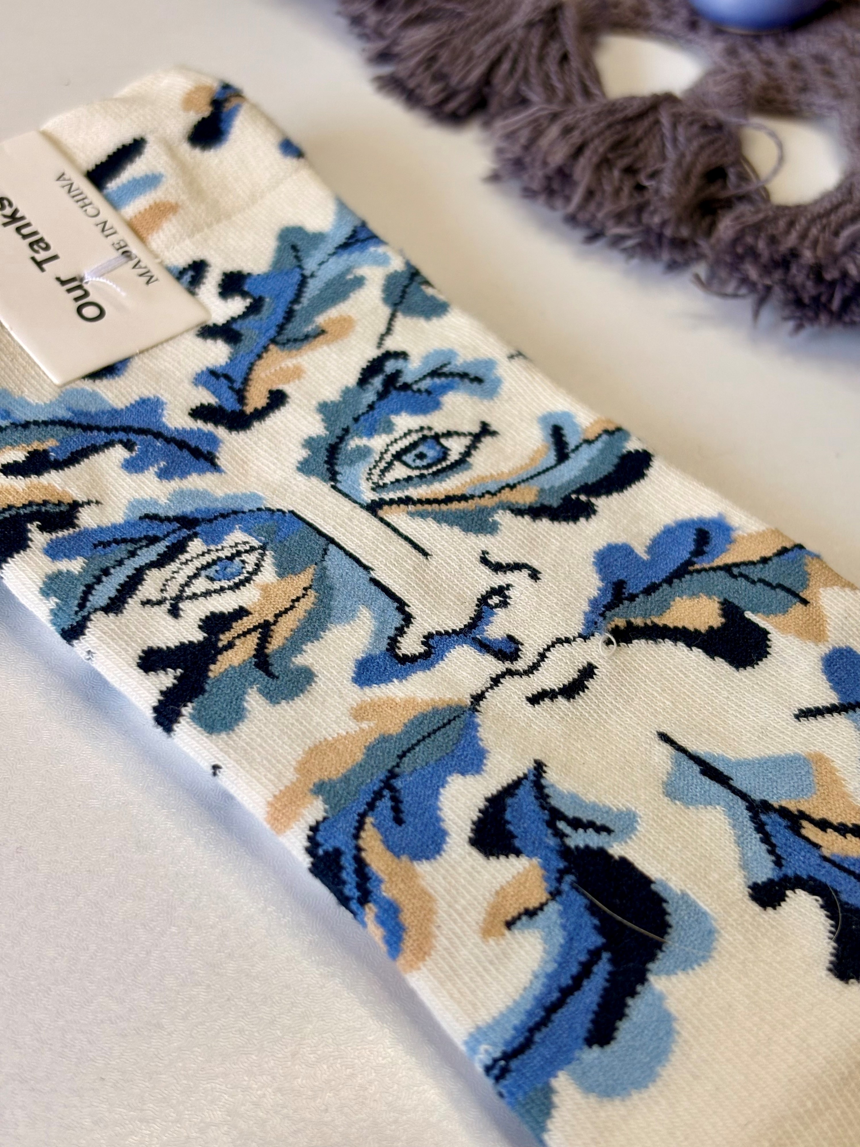 این جوراب ساق بلند با طرح خلاقانه صورت و برگهای آبی و قهوهای، انتخابی متفاوت برای افرادی است که به استایل خاص و یونیک اهمیت میدهند. پارچه نخی نرم و باکیفیت آن باعث راحتی و گردش هوا میشود و بهخوبی برای استفاده روزانه، مهمانیهای دوستانه یا استایلهای کژوال و فانتزی مناسب است. ترکیب رنگ جذاب آبی، بژ و قهوهای در کنار نوک قهوهای جوراب، جلوهای مدرن و منحصربهفرد به آن داده است.