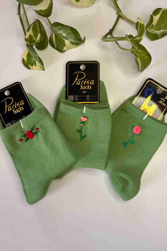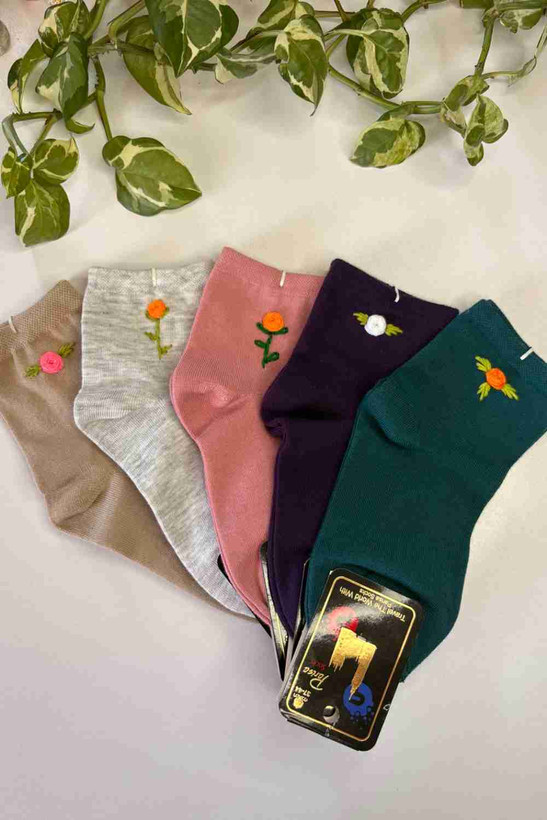 جوراب ساق کوتاه گلدوزی دار