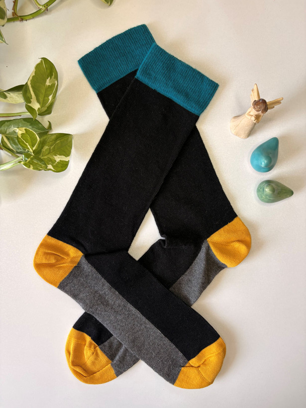 دیدن محصولات مرتبطاین جوراب ساق بلند با طراحی سهتکه رنگی در ترکیب آبی فیروزهای، مشکی، خاکستری و زرد خردلی، انتخابی منحصربهفرد برای استایلهای اسپرت و روزمره است. جنس نرم و لطیف آن باعث راحتی در استفاده طولانیمدت میشود و رنگهای متضاد، جلوهای مدرن و پرانرژی به تیپ شما میدهند. این جوراب مناسب افرادی است که به جزئیات استایل خود اهمیت میدهند و به دنبال اکسسوری خاص هستند.