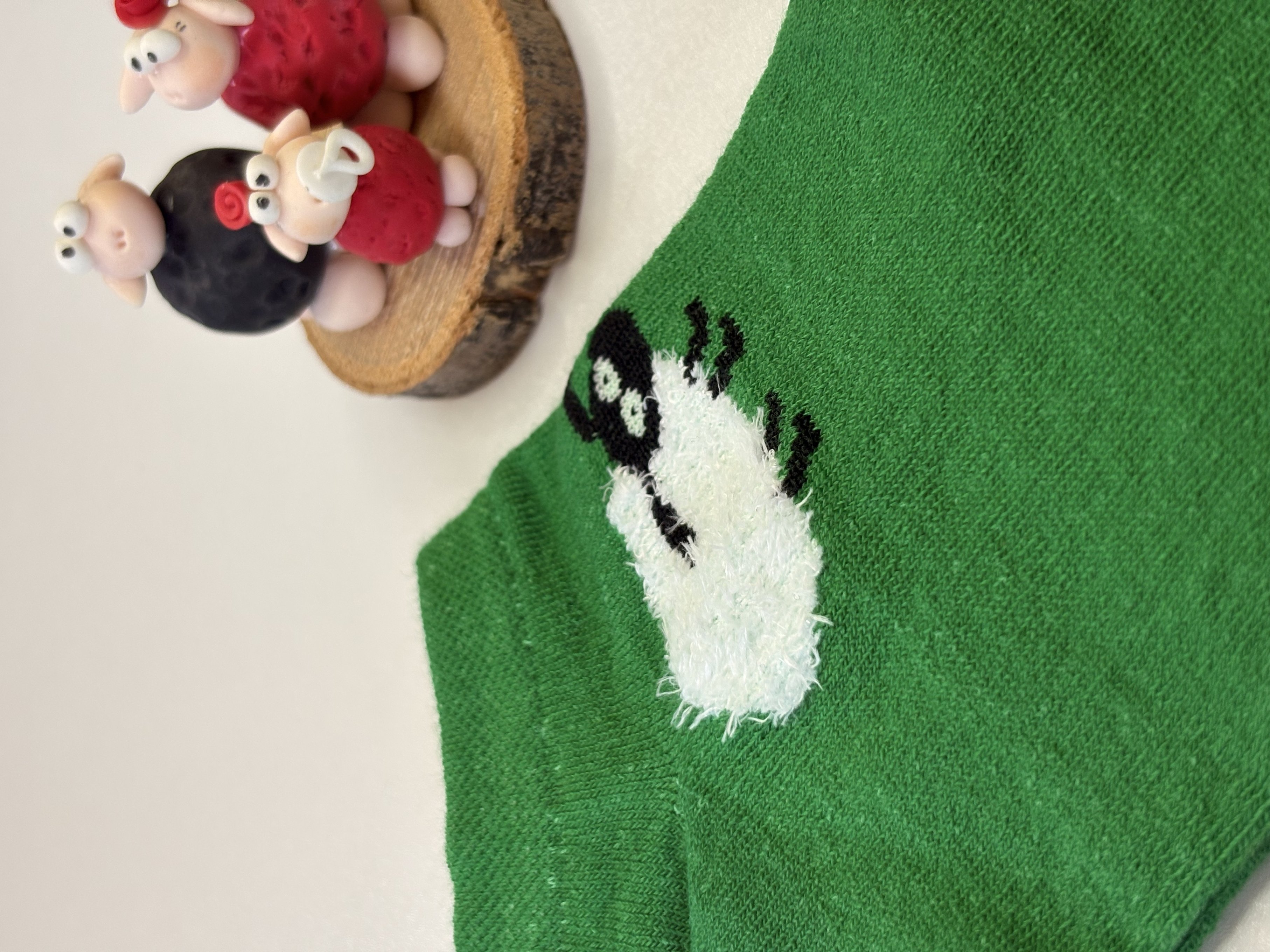 با این جورابهای بامزه و روستایی، حس آرامش مزرعه را به پاهایتان بیاورید! طراحی ساده و دلنشین با گلدوزی گوسفند سیاه و سفید پشمی روی زمینه سبز زمردی، همراه با جزئیات نرم و برجسته، نمادی از سادگی و شادی طبیعت است. جنس راحت و تنفسپذیر پنبهای (۸۰% پنبه، ۲۰% الاستین)، ایدهآل برای روزهای روزمره، پیادهروی در پارک یا هدیهای گرم برای عاشقان حیوانات. سایز استاندارد (۳۵-۴۰)، قابل شستشو در ماشین و مقاوم در برابر رنگپریدگی. همراه با مجسمههای گوسفند دستساز رنگی روی پایه چوبی، این ست هدیهای نوستالژیک و شاد برای خانوادهها یا کودکان است – هر جفت، داستانی از ماجراجوییهای مزرعهای را روایت میکند!