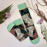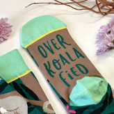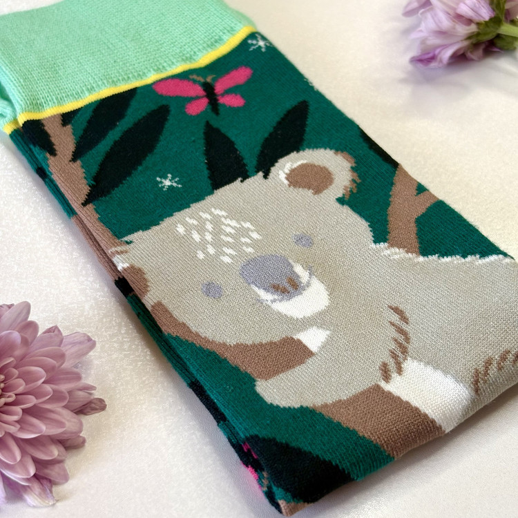 با این جورابهای بامزه و پاندار، حس جنگل استرالیا را به پاهایتان بیاورید! طراحی خلاقانه شامل کوآلای خاکستری خوابآلود در حال چسبیدن به درختان سبز، با عبارت طنزآمیز "OVER KOALA-FIED" (بازی با overqualified)، روی زمینه قهوهای گرم و لبههای نعنایی، نمادی از آرامش و شوخطبعی است. جنس نرم و راحت پنبهای (۷۰% پنبه، ۳۰% الاستین)، ایدهآل برای روزهای کژوال، هدیه به عاشقان حیوانات یا استایلهای طبیعتگرا. سایز استاندارد (۳۶-۴۲)، قابل شستشو در ماشین و مقاوم در برابر چروک. همراه با دکور گلهای بنفش، شاخههای قهوهای و پروانههای صورتی، این ست هدیهای دلنشین برای لحظات شاد است – چون گاهی بیش از حد کوآلا بودن، بهترین صلاحیت است!