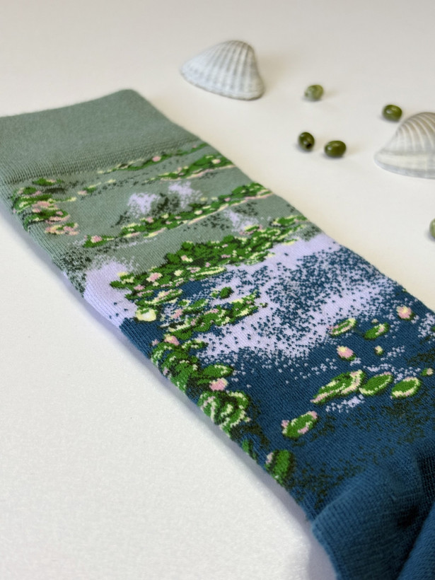 غرق در زیبایی طبیعت شوید با جوراب نیلوفر آبی ما! این جورابهای نرم و سبک، با الگوی هنری نیلوفرهای سبز و صورتی، موجهای آبی ملایم و لکههای بنفش روی زمینه فیروزهای و سرمهای، حس طراوت برکههای آرام را به پاهای شما میبخشد. لبههای پنبهای نرم، راحتی تمامروز را تضمین میکند و مناسب برای استایلهای کژوال، یوگا یا پیادهرویهای طبیعتگردی است. ساختهشده از مواد مرغوب و تنفسپذیر، این جورابها نه تنها ظاهر شما را هنری میکنند، بلکه نمادی از صلح و زیبایی طبیعی هستند. هدیهای ایدهآل برای عاشقان هنر و طبیعت. سایز استاندارد، قابل شستشو و بادوام. آرامش را لمس کنید، قدم بزنید و الهام بگیرید!