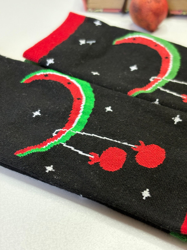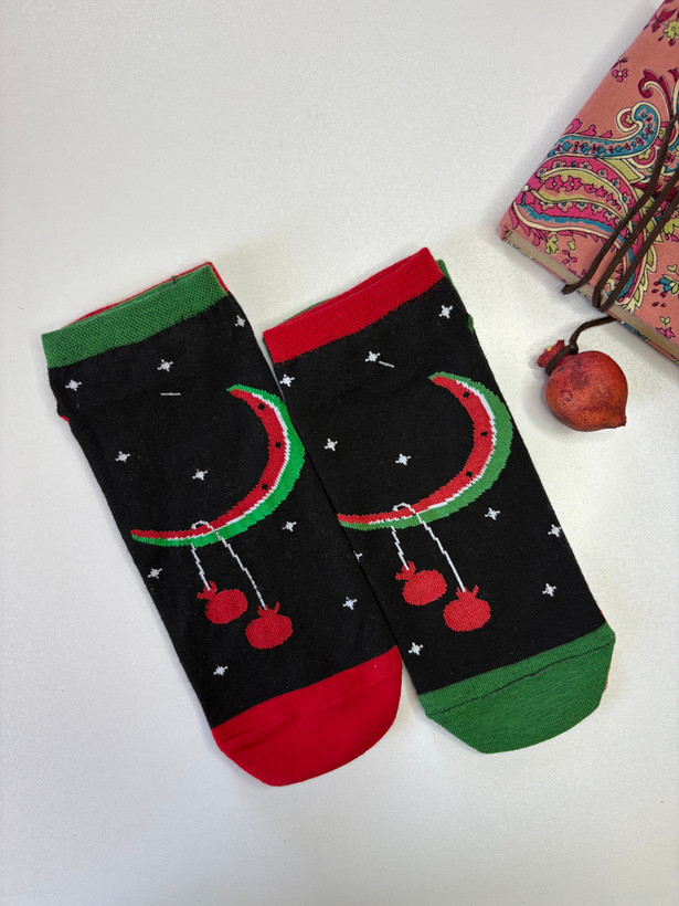 جوراب فانتزی طرح هندونه و انار – مدل شب یلدایی 🍉❤️