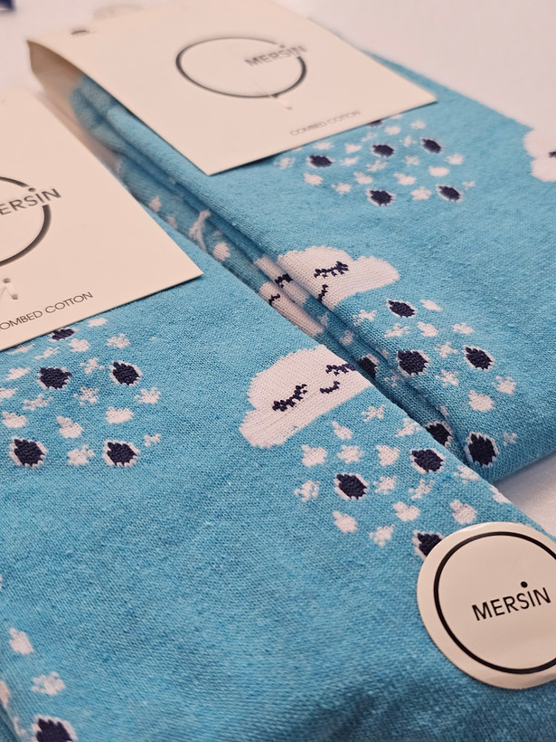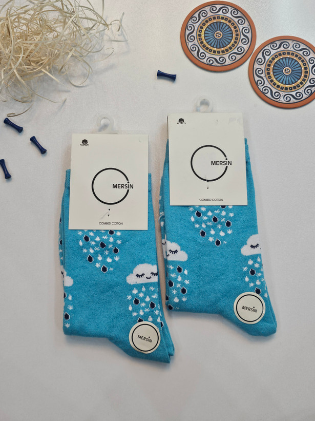 جوراب فانتزی MERSIN طرح ابر و بارون – آبی آسمونی و پرانرژی ☁️🌧️