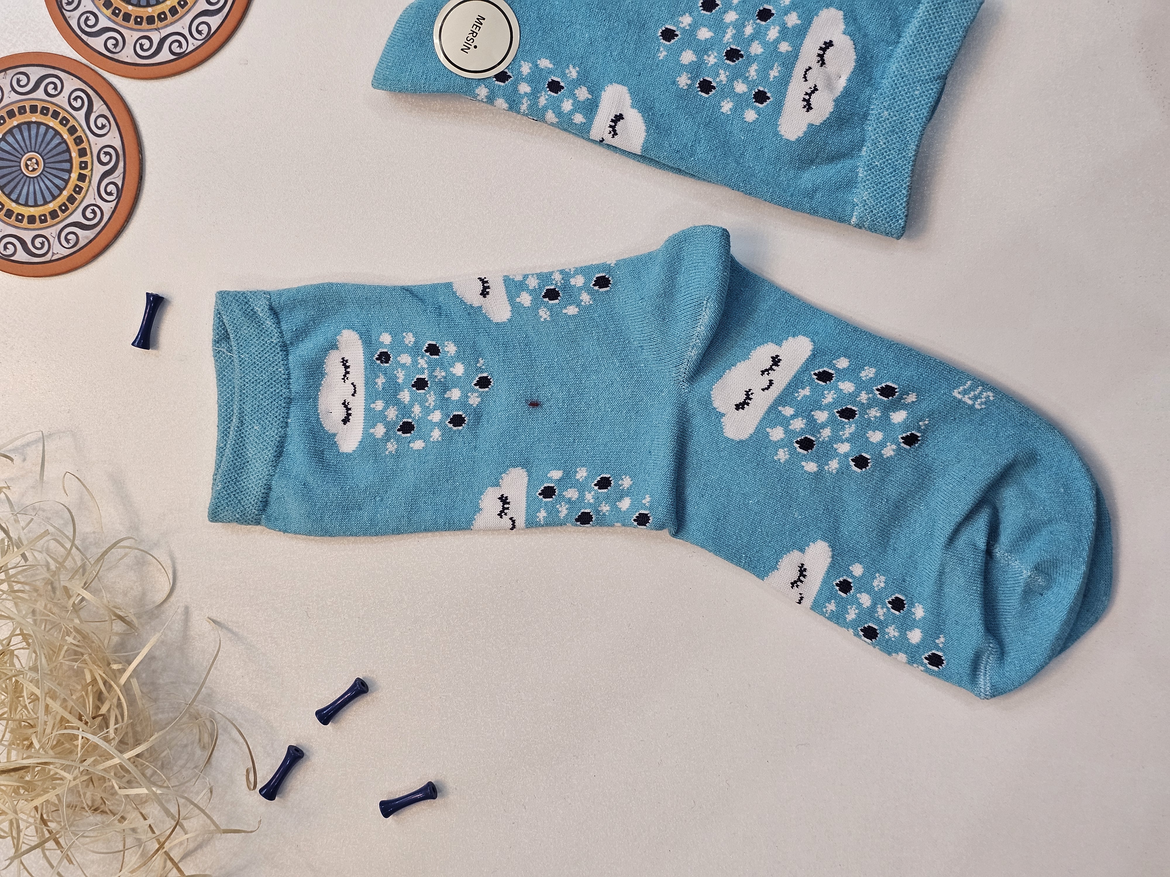 جوراب فانتزی MERSIN طرح ابر و بارون – آبی آسمونی و پرانرژی ☁️🌧️