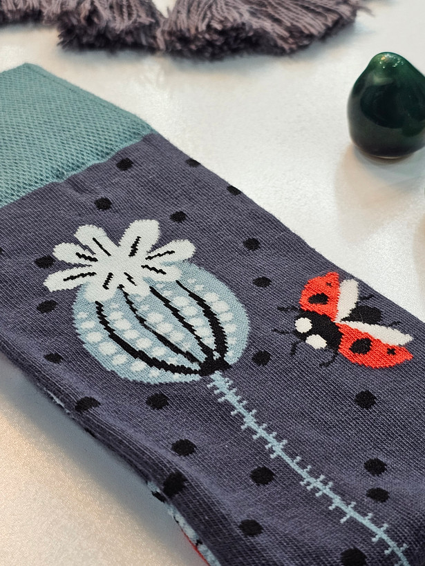 جوراب فانتزی طرح گل و کفشدوزک – انرژی مثبت در هر قدم 🌸🐞