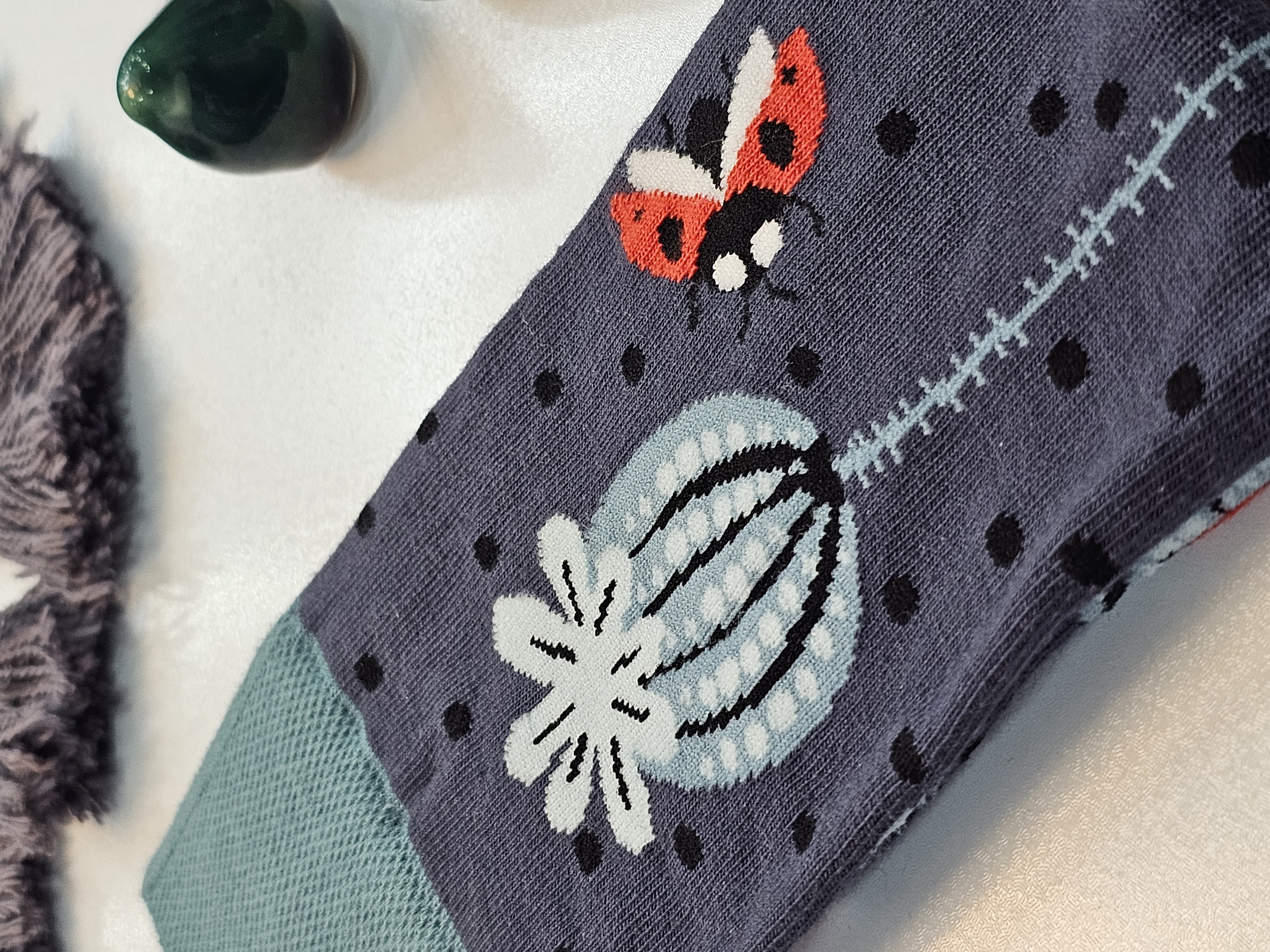 ترکیب رنگهای جذاب طوسی تیره، سبز آبی و قرمز، همراه با طرح گل و کفشدوزک، باعث میشه استایلت همیشه خاص و متفاوت به نظر بیاد 🌿