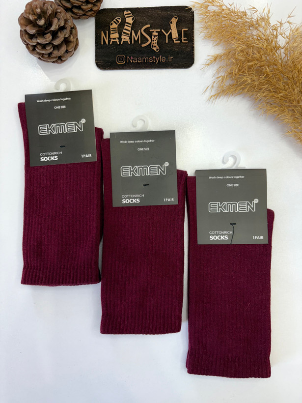 جوراب ساده EKMEN – راحتی کلاسیک در رنگ زرشکی خاص 🍇