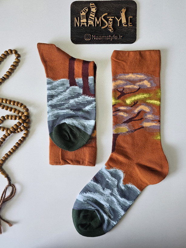 جوراب ساقدار طرح منظره پاییزی – خاص، هنری و گرم 🍂